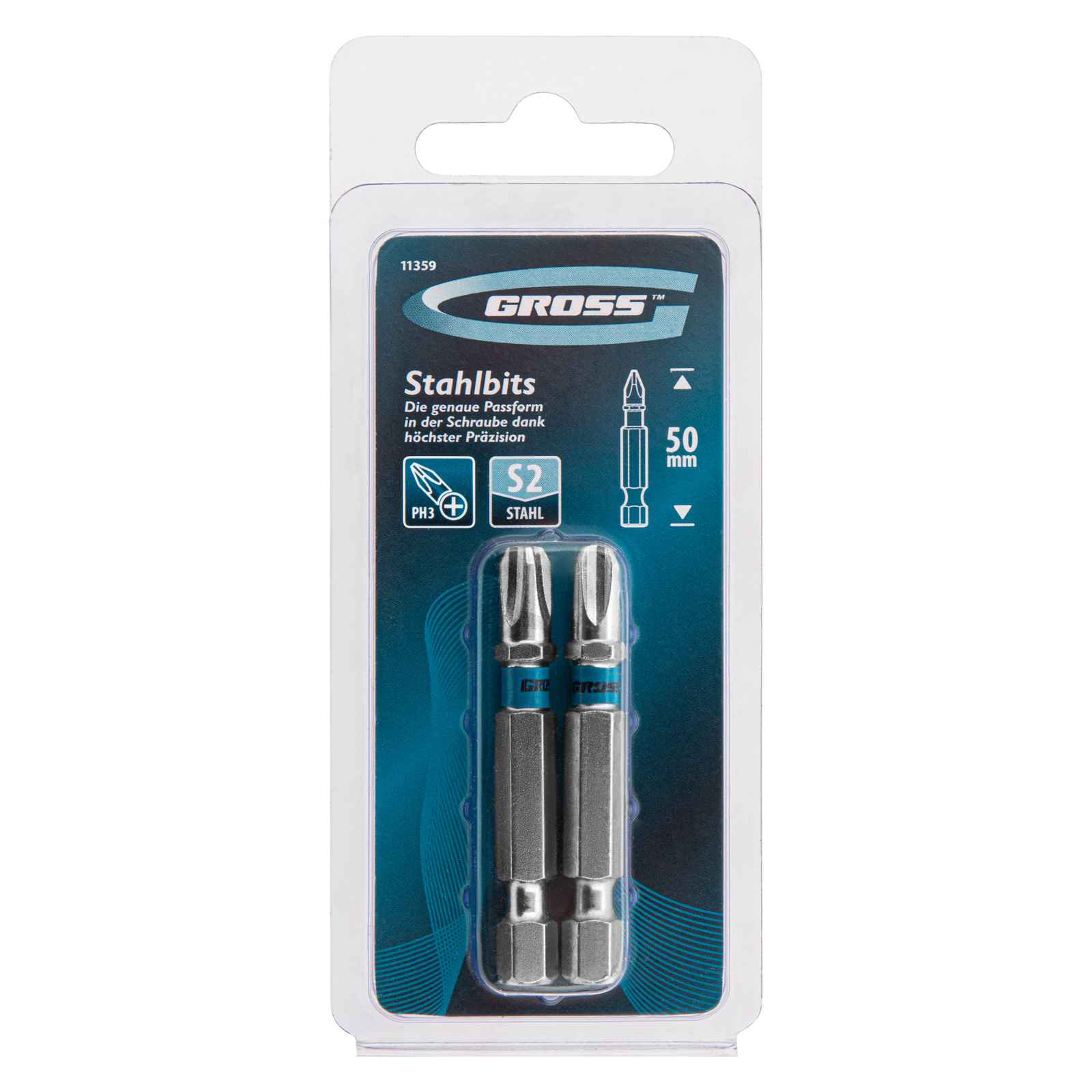Набор бит Gross 11359 состоит из 2 наиболее востребованных крестообразных насадок типа PH3 длиной 50 мм, с хвостовиком 1/4 дюйма, изготовленных из стали S2 и предназначенных для использования с шуруповертами и отвертками-адаптерами. За счет оптимальной геометрии и высокой точности исполнения шлица биты не проскальзывают в головках крепежа. Оснастки используются для монтажа и демонтажа саморезов по дереву, шурупов и других резьбовых крепежей.