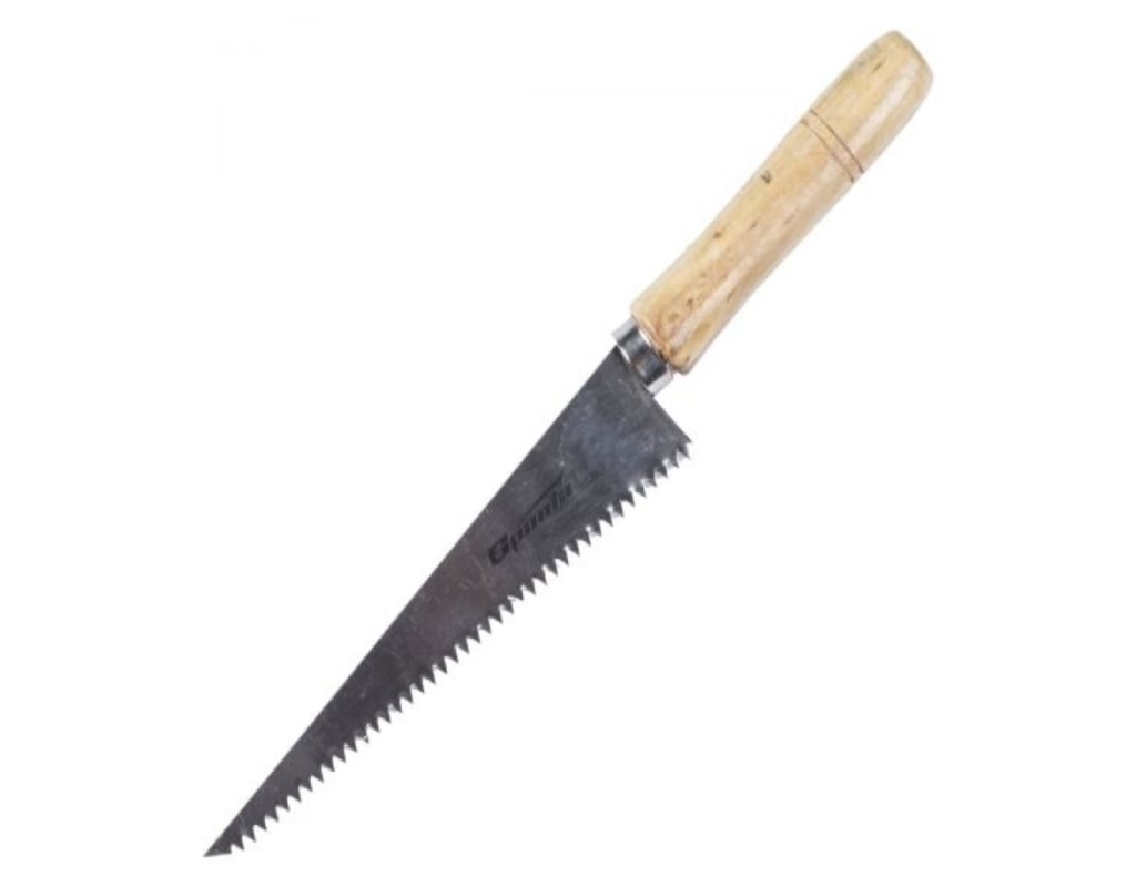 Ножовка применяется во время ремонтных и отделочных работ. Острое лезвие легко справится с гипсокартоном.