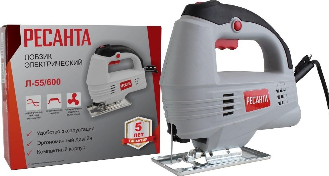 Электрический лобзик Ресанта Л-55/600 используется для резки деревянных или металлических заготовок.