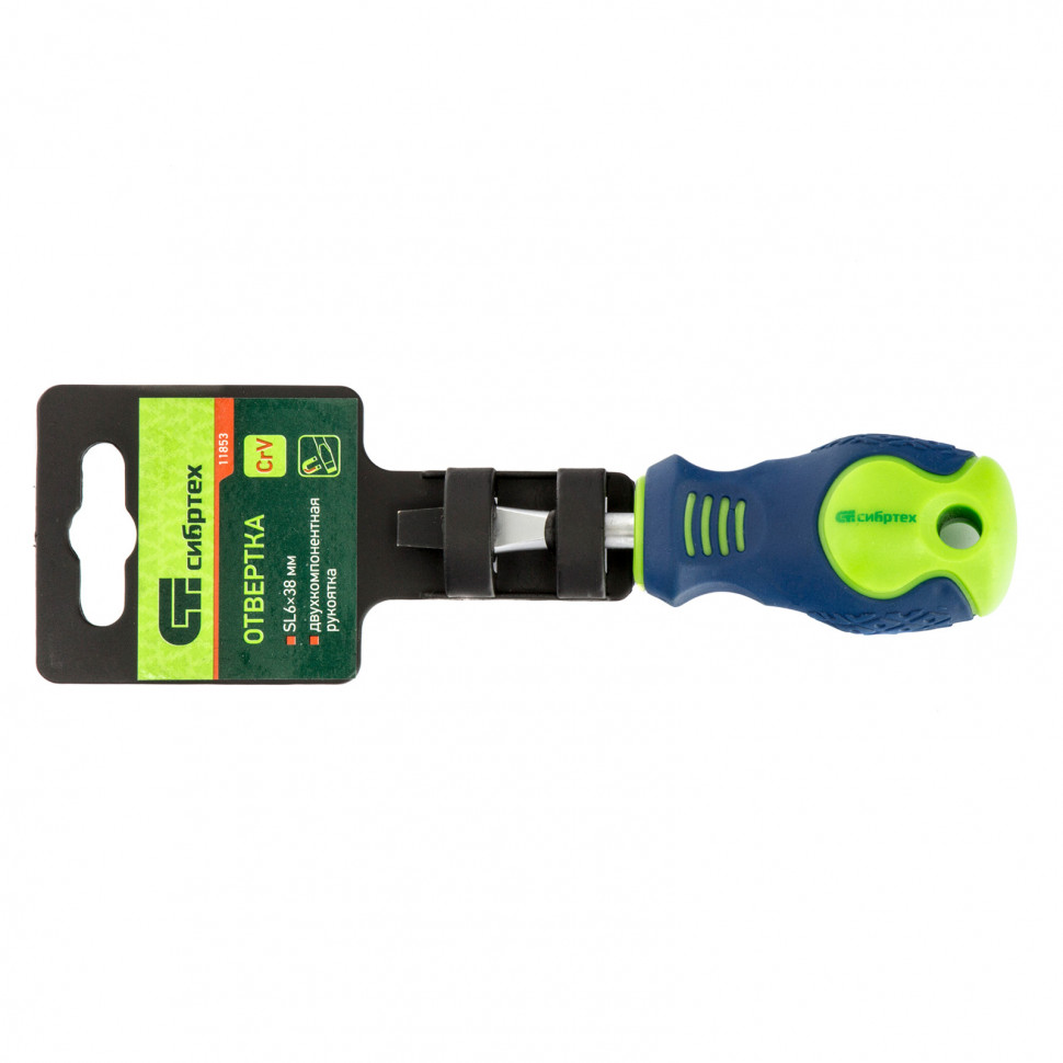 11853 Отвертка Сибртех, SL6х38 мм, CrV, 2к рукоятка