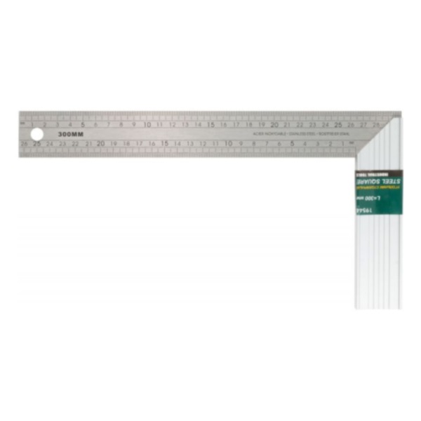 Столярный угольник 300х150 мм FIT изготовлен из нержавеющей стали и имеет алюминиевое основание.