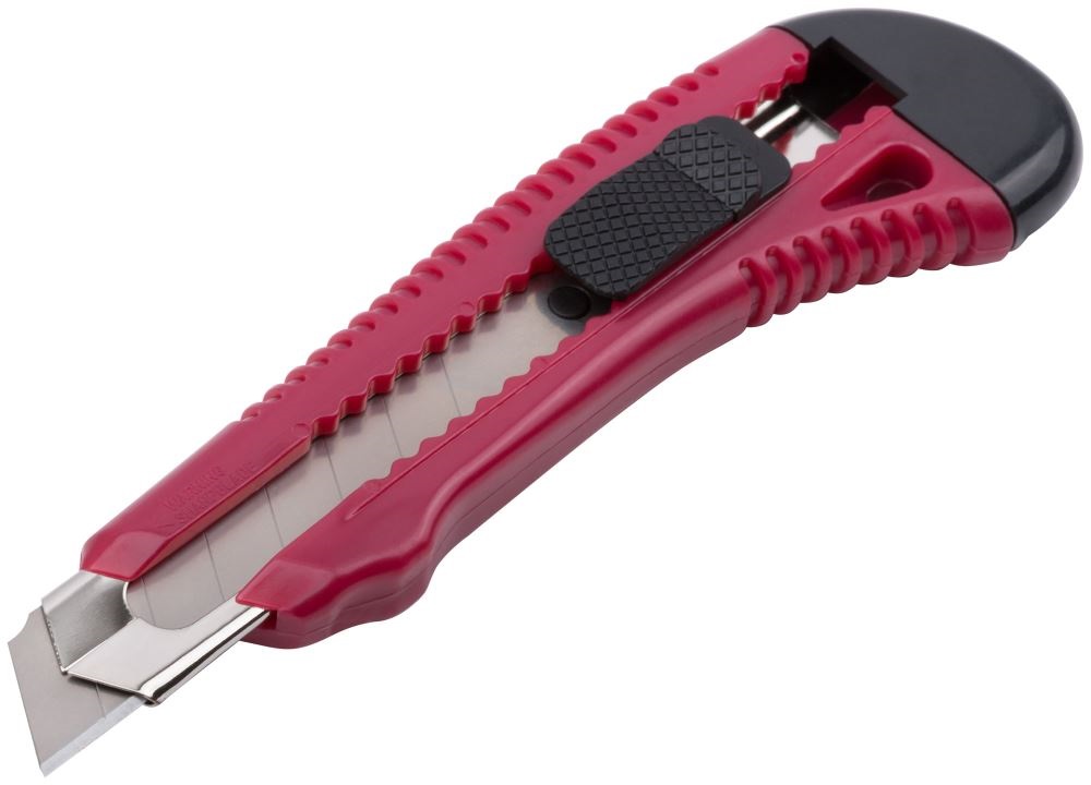 «Оптима». Сегментированное лезвие из высокоуглеродистой инструментальной стали. Пластиковый корпус, усиленный металлической направляющей. Упаковка: п/э пакет с подвесом.