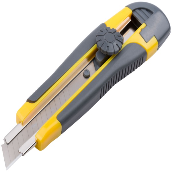 Технический нож с сегментированным отламывающимся лезвием из высокоуглеродистой стали SK-5 служит для подрезки стройматериалов во время ремонтных работ.