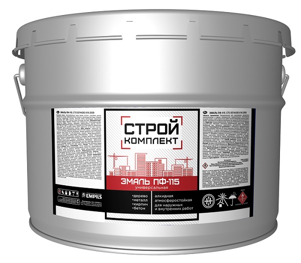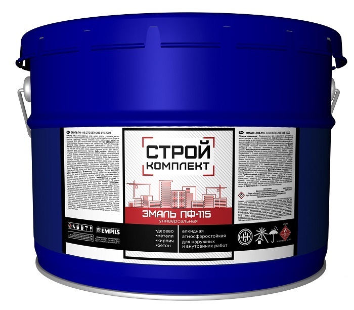Эмаль ПФ-115 предназначена для окраски деревянных, металлических и других поверхностей, подвергающихся атмосферным воздействиям, и для окраски внутри помещений (оконные рамы, двери, ДСП, ДВП и т. д.).