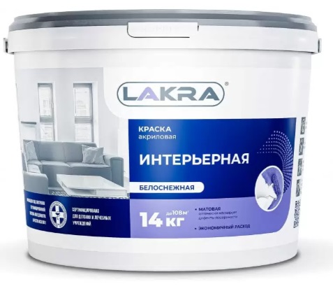 Краска Лакра Интерьерная акриловая 14кг, белоснежная