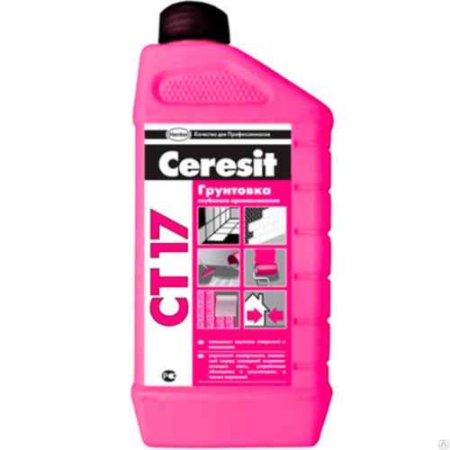 Грунтовка CT 17 предназначена для обработки впитывающих оснований перед креплением керамических и каменных плиток, нанесением штукатурок, напольных выравнивающих смесей и т.д. внутри и снаружи зданий. Обладает высокой проникающей способностью, повышает поверхностную прочность, снижает впитывающую способность основания, связывает остаточную пыль, предотвращае очную пыль, предотвращает пересыхание растворных смесей в тонком слое, повышает адгезию материалов к основанию, повышает растекаемость нивелирующих смесей и предотвращает появление пузырьков воздуха на выравнивающем слое. Применяется для обработки бетона, цементно-песчаных стяжек (в т.ч. с подогревом), цементных, цементно-известковых и известковых штукатурок, легкого и ячеистого бетона, ангидритных стяжек, гипсовых штукатурок, ДСП, ДВП, гипсокартона, цементностружечных плит, кладок из керамического и силикатного кирпича, природного камня и т.д.
