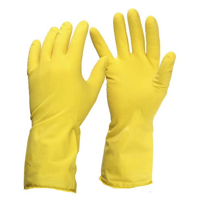 Латексные неопудренные защитные перчатки яркого цвета в внутренним хлопковым напылением.