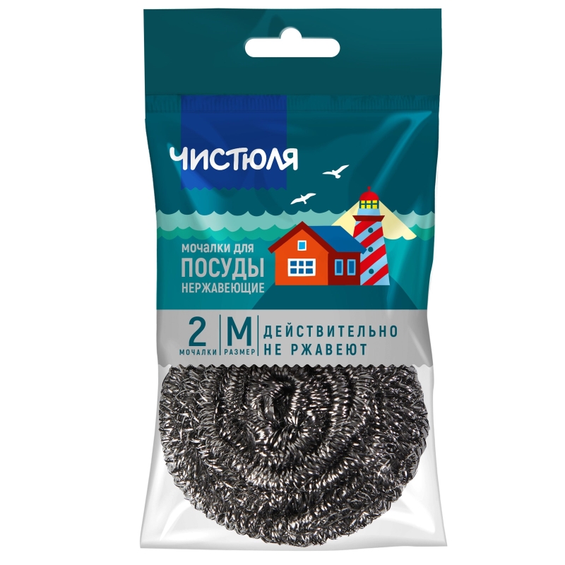 Мочалка металическая ЧИСТЮЛЯ размер М, 2шт