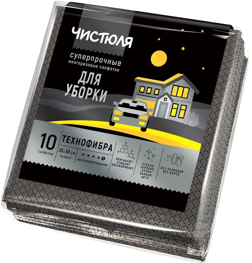 Набор салфеток ЧИСТЮЛЯ ДОМ-АВТО технофибра, 10шт