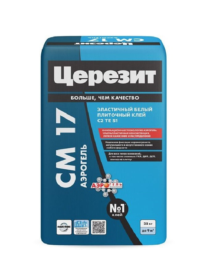 Клей для плитки ЦЕРЕЗИТ СM 17 АЭРОГЕЛЬ предназначен для крепления плиток из всех видов природного камня — мрамора, светлого известняка, травертина, гранита, просвечивающих пород камня и т.д., плиток из терракоты, клинкера и керамогранита, любого размера и формата, в т.ч. свыше 1×1 м, а также стеклянной (кроме зеркальной) мозаики, на стенах и полах внутри и снаружи зданий, в том числе на сложных и деформирующихся основаниях и элементах конструкций, таких как: