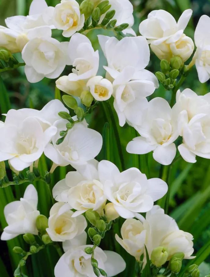 Фрезия «Дабл Вайт» — это воплощение нежности и чистоты с роскошными махровыми цветами белоснежного оттенка. Утонченные цветоносы высотой 40-50 см украсят ваш сад изысканными соцветиями, источающими тонкий изящный аромат. Эти многолетние луковицы создают эффект свежести и элегантности в цветниках и бордюрах.