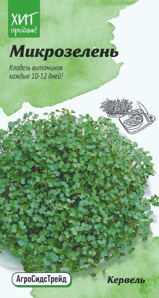 Душистое растение, которое выращивают для кулинарных и лечебных целей. Микрозелень кервеля с пряным вкусом и нежным ароматом петрушки и аниса прекрасно дополняет соусы, супы, блюда из яиц, картофеля, рыбы и птицы. Богата калием, фосфором, витамином А и кальцием. Улучшает метаболизм, обладает мочегонным, отхаркивающим и общеукрепляющими свойствами.