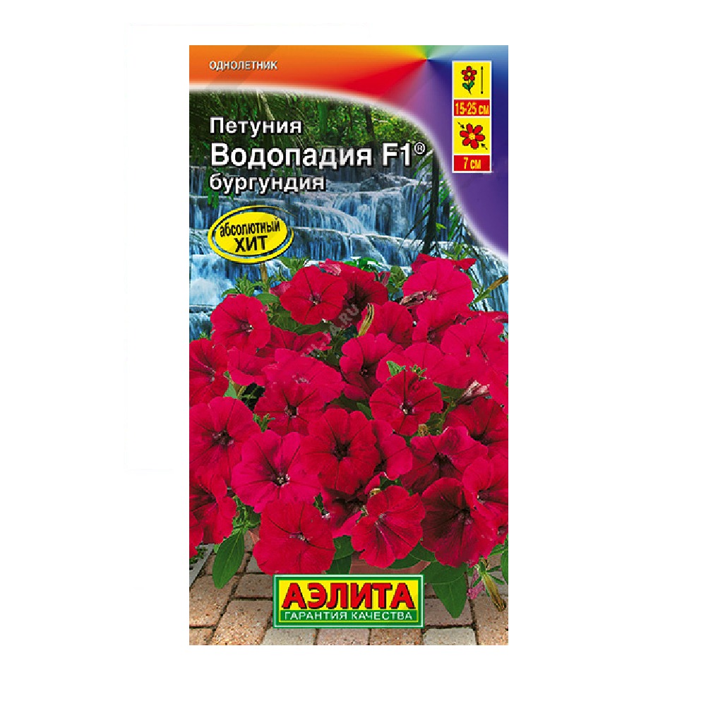 Серия многоцветковых петуний каскадного типа, которая отличается совершенно новой полуампельной формой. Уникальность этих гибридов в том, что новые цветоносные побеги образуются без прищипки в пазухах листьев в середине куста, не оставляя пустот. Растения формируют пышные кустики, высотой 15-25 см. Поникающие побеги длиной до 70 см полностью усыпаны яркими насыщенными цветками Ø 7 см и спускаются восхитительным водопадом. Гибриды устойчивы к повышенным температурам и неблагоприятным п огодным условиям. Петунии Водопадия F1® наилучшим образом подходят для подвесных кашпо и корзин.