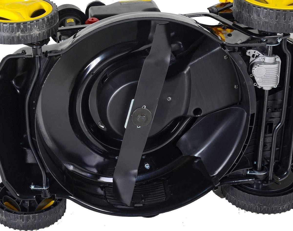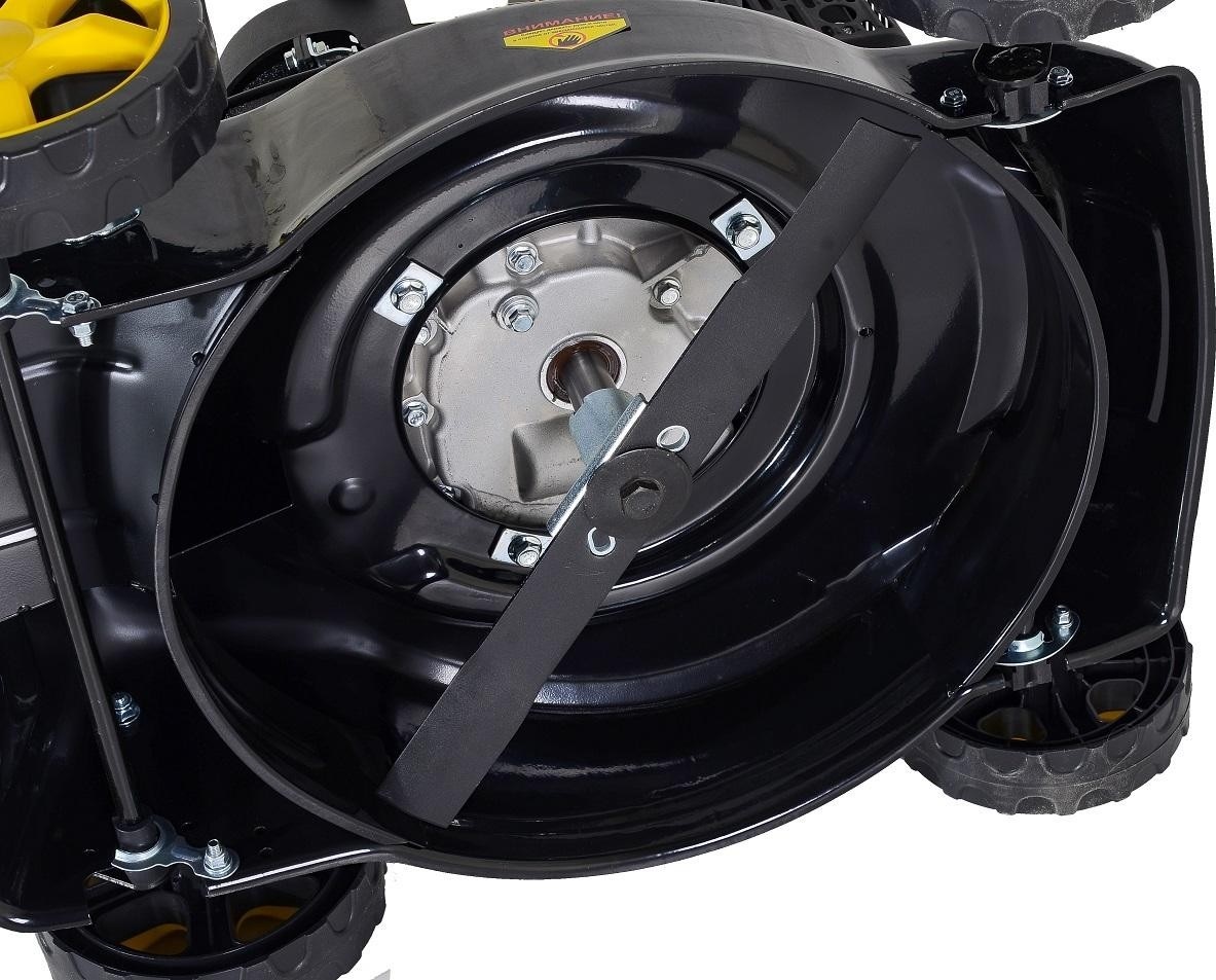 Удобная складная рукоятка со встроенными рычагами управления увеличивает удобство управления и хранения косилки. Вместительный травосборник, рассчитанный на 60 л отходов, не требует частого опустошения.