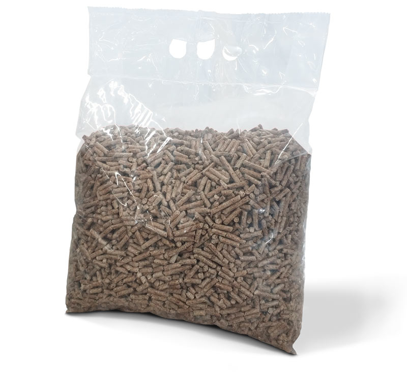 Пеллеты производятся из древесных опилок. На выходе этот материал имеет форму цилиндрических гранул диаметром 6 мм. Поставляется инновационное топливо в плот в плотных полиэтиленовых мешках, фасованное по 10 килограмм.