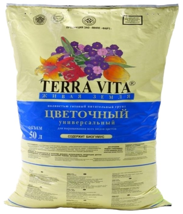 Полностью готовый питательный грунт Терра Вита применяется для посадки и пересадки всех видов цветочных и декоративных культур, выращивания рассады и укоренения черенков.