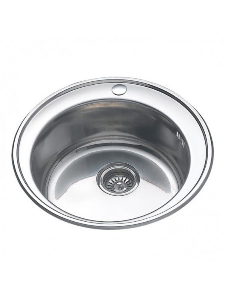 Мойка кухонная Vladiks, круглая, врезная, нерж, с сифоном, 490*490*160 мм