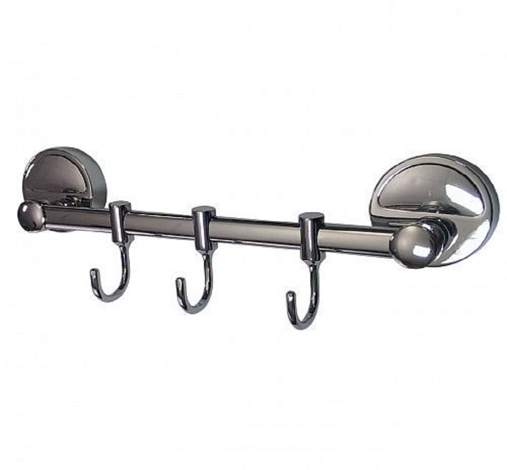Держатель для полотенец металлический, хромированный с тремя подвижными крючками.