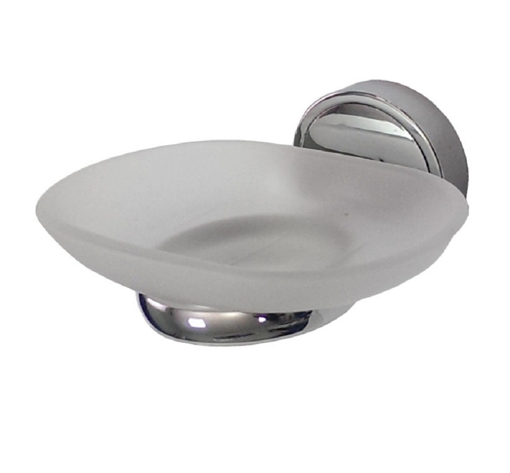 Мыльница подвесная, стеклянная с креплением к стене, овальной формы на основании , хромированная