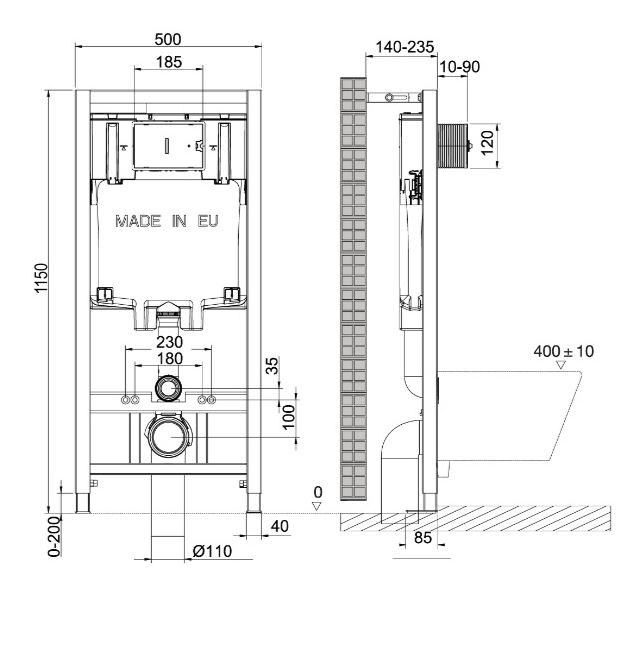 СИСТЕМА УСТАНОВКИ подходит для лёгких и несущих стен и всех видов подвесных унитазов