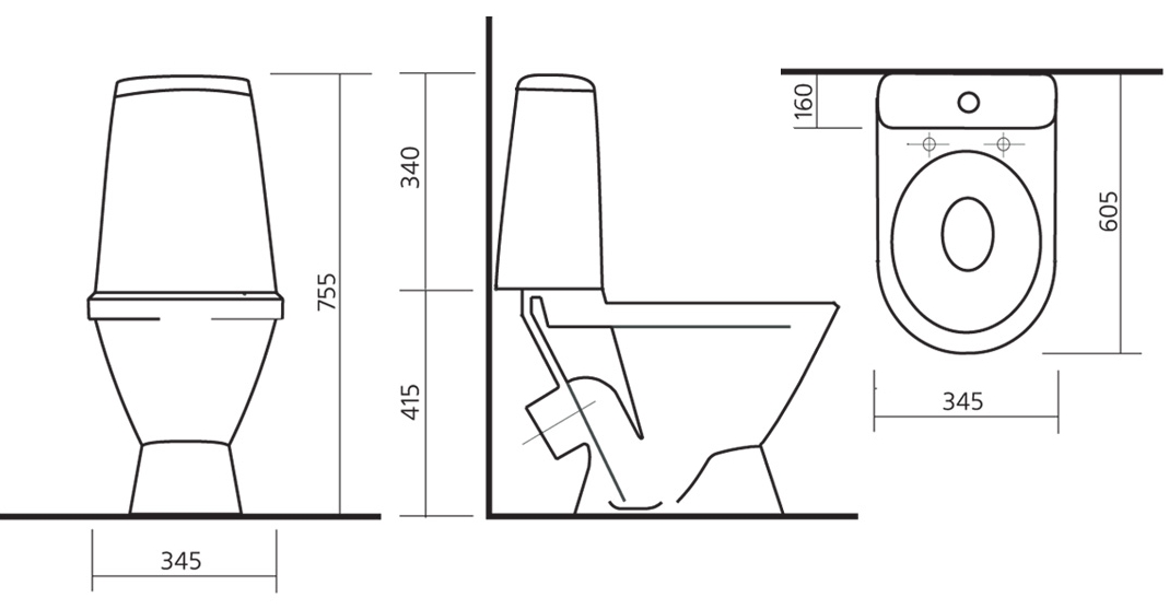 Комплектация Эконом: арматура однорежимная Уклад, сиденье полипропилен, крепление к полу.