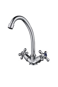 Кран для мойки оснащен гусаком, что позволяет максимально удобно мыть посуду или руки. Кран для раковины имеет механизм двухвентильного переключения, что позволяет легко регулировать температуру и напор воды.