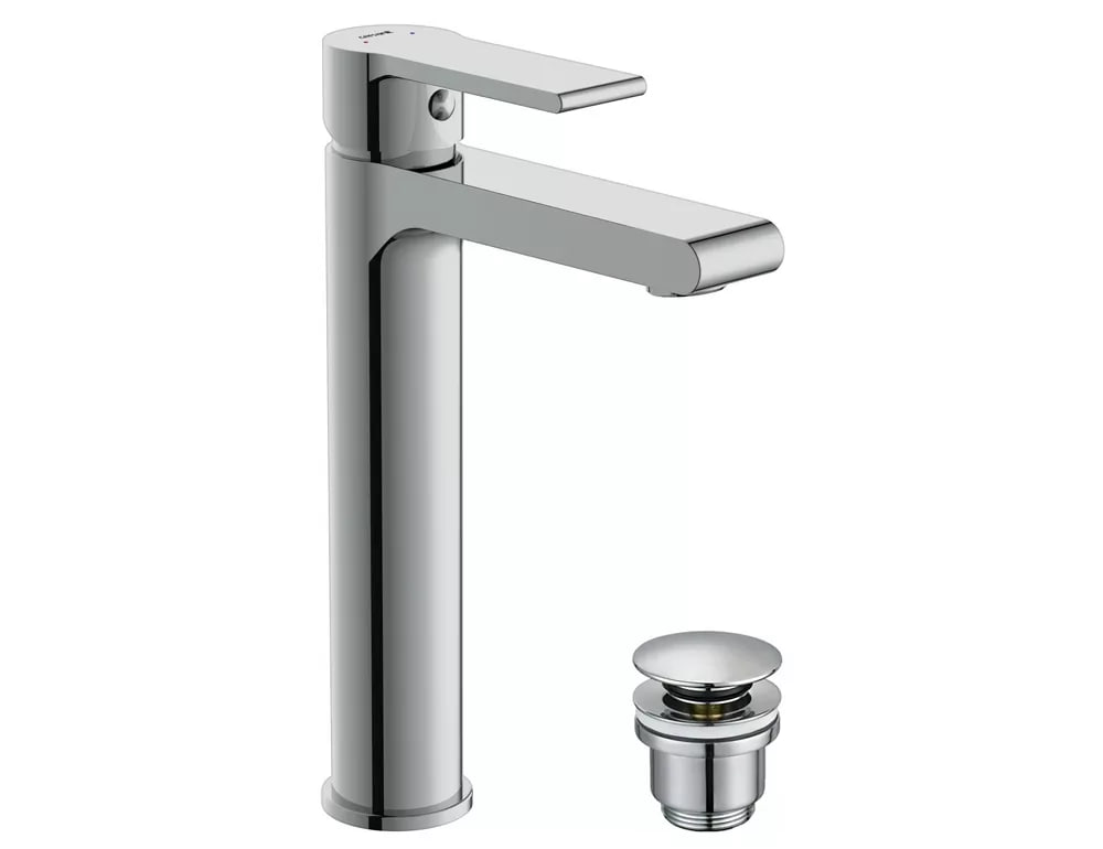 A63024 Смеситель для раковины CERSANIT BRASKO высокий, сливной гарнитур
