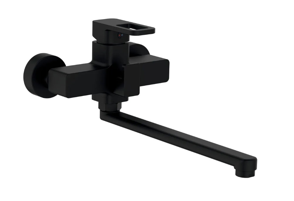 Представляем современный смеситель для ванной комнаты модели D-Lin D147364-A. Этот стильный аксессуар выполнен в элегантном чёрном цвете и оснащен удобным переключателем потока воды (дивертором), расположенным непосредственно на корпусе изделия. Длина излива составляет внушительные 300 мм, что обеспечивает комфортное использование.