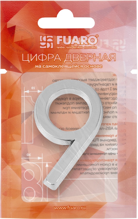 Номер дверной FUARO №9 хром самоклеящийся (50х37)