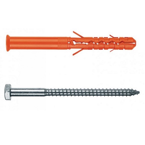 Дюбель длиной 100 мм изготовлен из долговечного нейлона и комплектуется стальным оцинкованным шурупом с шестигранной головкой.