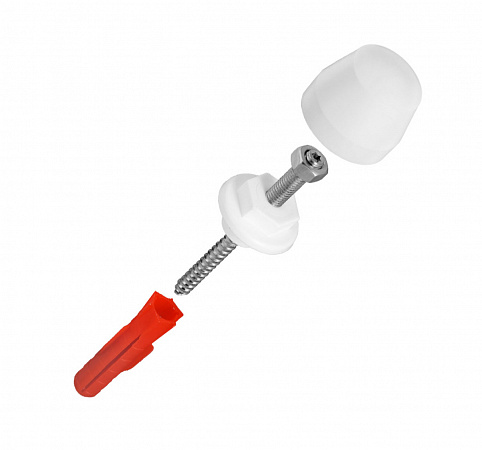 В состав набора для крепления умывальника входят: шпильки сантехнические М8х100 мм (2 шт.), дюбели распорные трехсегментные 12,0х60 мм (2 шт.), гайки DIN 934 шестигранные М8 (2 шт.) и шайбы с колпачком (2 шт.).