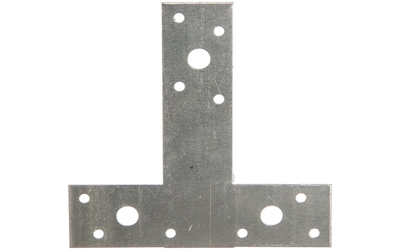 Т-образные пластины используют для соединения двух или трех элементов конструкции, находящихся в одной плоскости. Рекомендуется использовать две пластины на соединение, по одной на каждую из сторон. Наличие отверстий диаметром 11 мм. позволяет осуществлять крепление к элементам из металла или бетона.