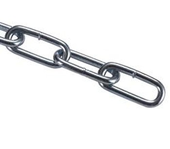 Цепь сварная длиннозвенная, оцинкованная общего назначения не используется для подъема. Хорошо работает для растяжки, позволяет легко регулировать длину цепи. Состоит из стальных звеньев овальной формы, соединенных между собой. Не выносит ударных нагрузок.цепь длиннозвенная. Стальная цепь с длинным звеном DIN 763 используется для создания растяжек и подвесок, а также различных такелажных приспособлений негрузового назначения.