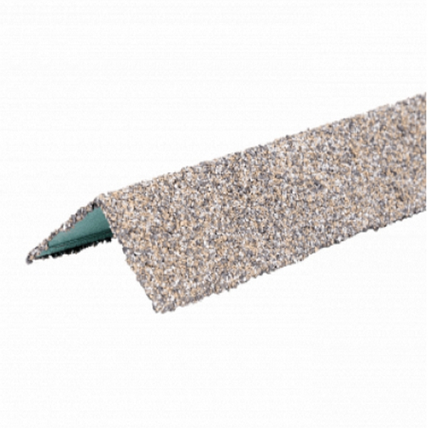 Внешний уголок изготовлен из высокопрочного стального листа толщиной 0,45 мм. С обоих сторон изделие покрыто алюмоцинковым сплавом. Покрытие внешней стороны – базальтовый гранулят. Уголок не подвержен коррозии и не будет окисляться даже в месте среза при монтаже, а также в случае появления царапин на слое.