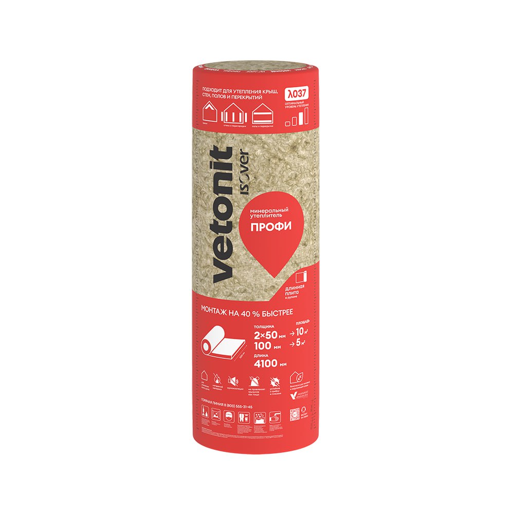 Утеплитель Vetonit Профи ТВИН 4100х610х50х4 плотность 15кг/м3, (0,5м3) 42упак/паллета