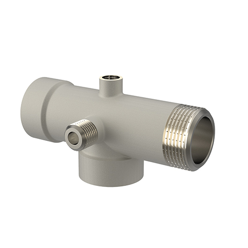 Пятиходовой соединитель для насоса VTr.600 выполнен из латуни CW617N методом горячей объемной штамповки, имеет никелевое гальванопокрытие.