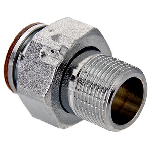 (VTr.611.N) Латунный никелированный фитинг. Основное назначение – подключение водосчетчиков. Обеспечивает наличие прямых участков длиной в три условных диаметра до и после расходомера, необходимых для его точной работы. Накидная гайка имеет отверстие для пломбировки. Резьба со стороны без гайки: наружная, трубная цилиндрическая по ГОСТу 6357 (ISO 228, EN 10226).