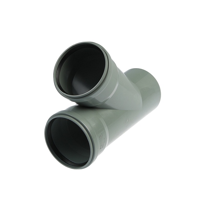 Предназначен для разветвления потока воды на два направления в одной плоскости. Используется с трубами канализационными внутренними диаметром 110 мм и имеет 1 отвод для труб диаметром 110 мм. Обеспечивает отвод на 45º.