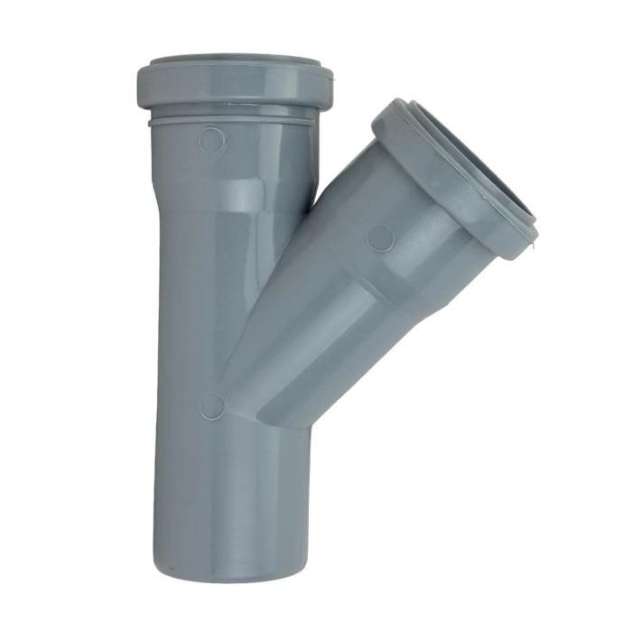 Предназначен для разветвления потока воды на два направления в одной плоскости. Используется с трубами канализационными внутренними диаметром 50 мм и имеет 1 отвод для труб диаметром 50 мм. Обеспечивает отвод на 45º.